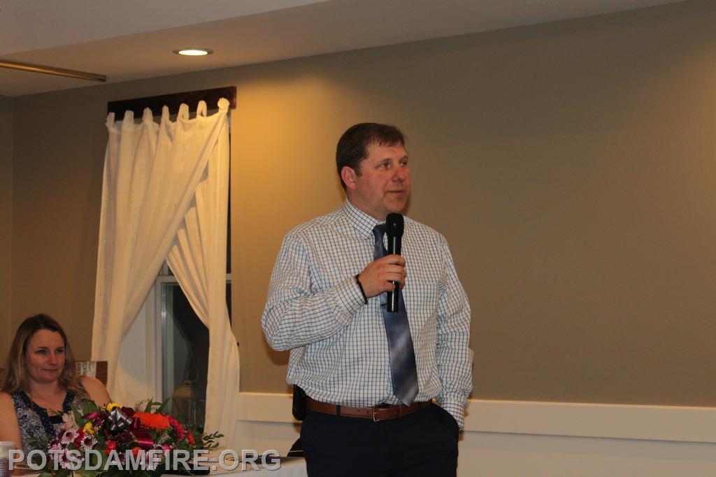 The members of the Potsdam Fire Department held their annual banquet on April 18, 2026. The event took place at the Potsdam Elks Lodge. The evening began with opening remarks from emcee Torey Russell of the West Stockholm Fire Department. Attendees then enjoyed a prime rib dinner. After the meal, the emcee introduced guests, Honor Roll members, and the widows of past members who were present. Following these introductions, several awards were presented. Fireman of the Year was awarded to Stephen Davis. Aggravator of the Year went to Jim Corbett. Rookie of the Year was presented to Nick Gruda. Chiefs Awards were given to Sam Allen, Sage Demers, and Brad Andrus. The Springarm "I'll drive" award was awarded to Mark Maroney. Service awards were as follows: 5 years Michael Keleher and Stephen Davis. 40 Years of service to Christopher Taylor and David McGregor. The Department extends its thanks to the Canton Fire Department for providing a standby crew, allowing Potsdam members to enjoy the evening.