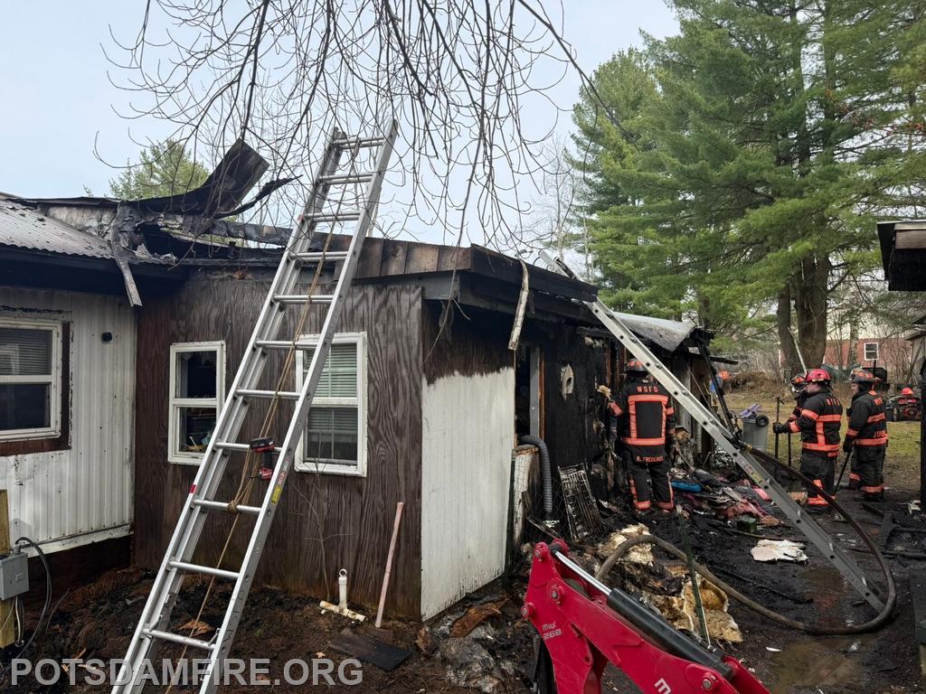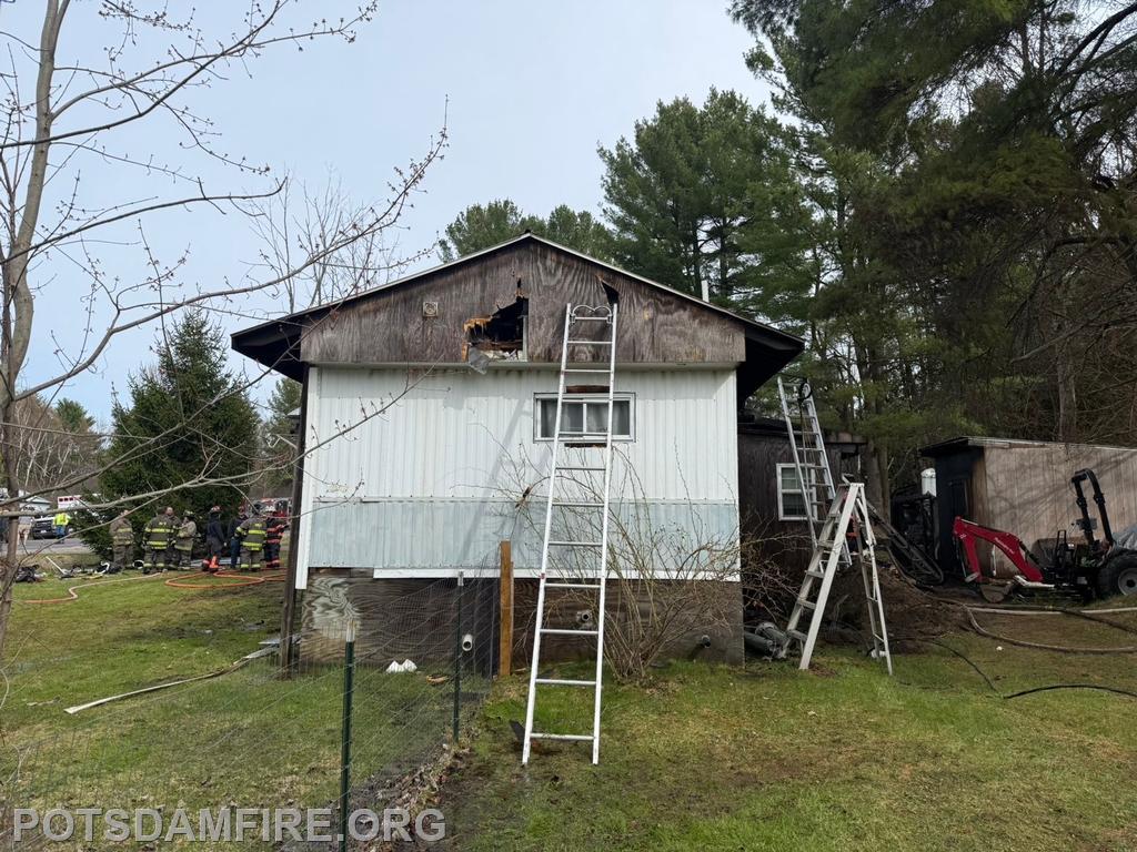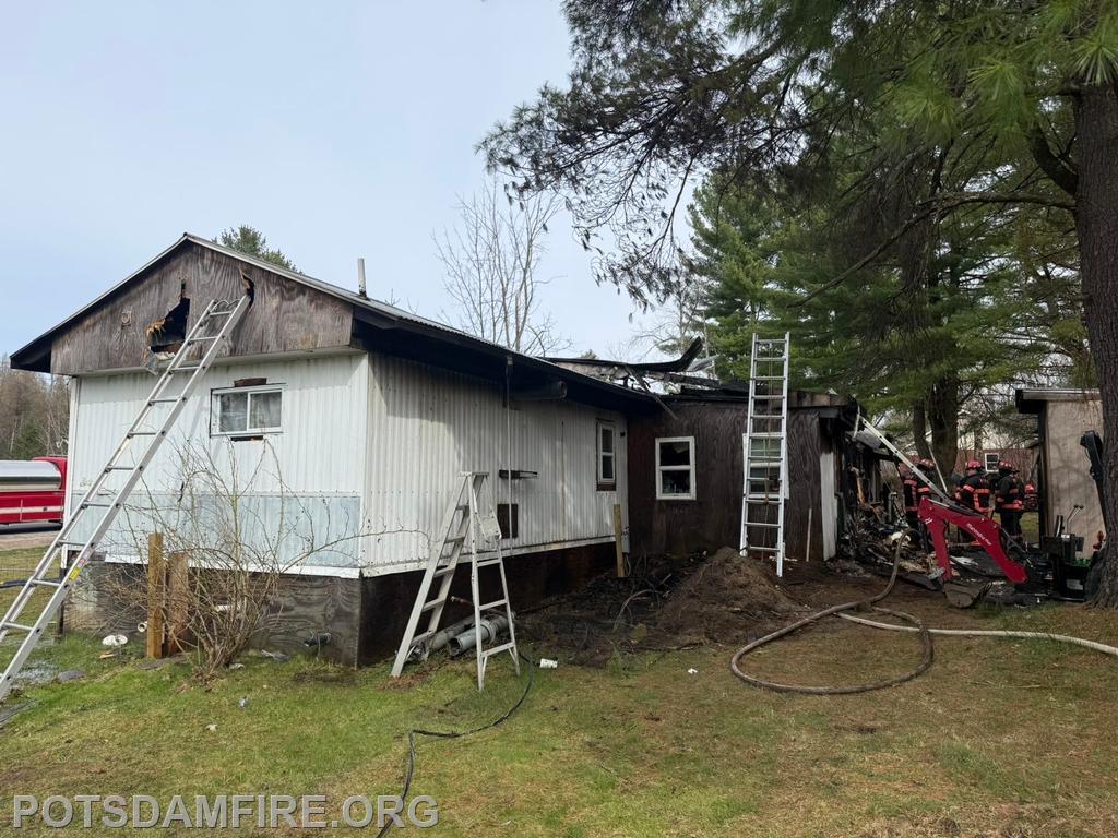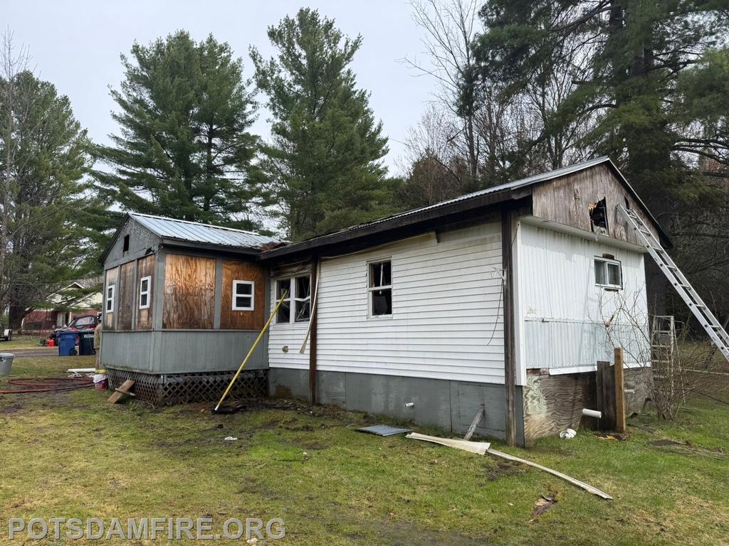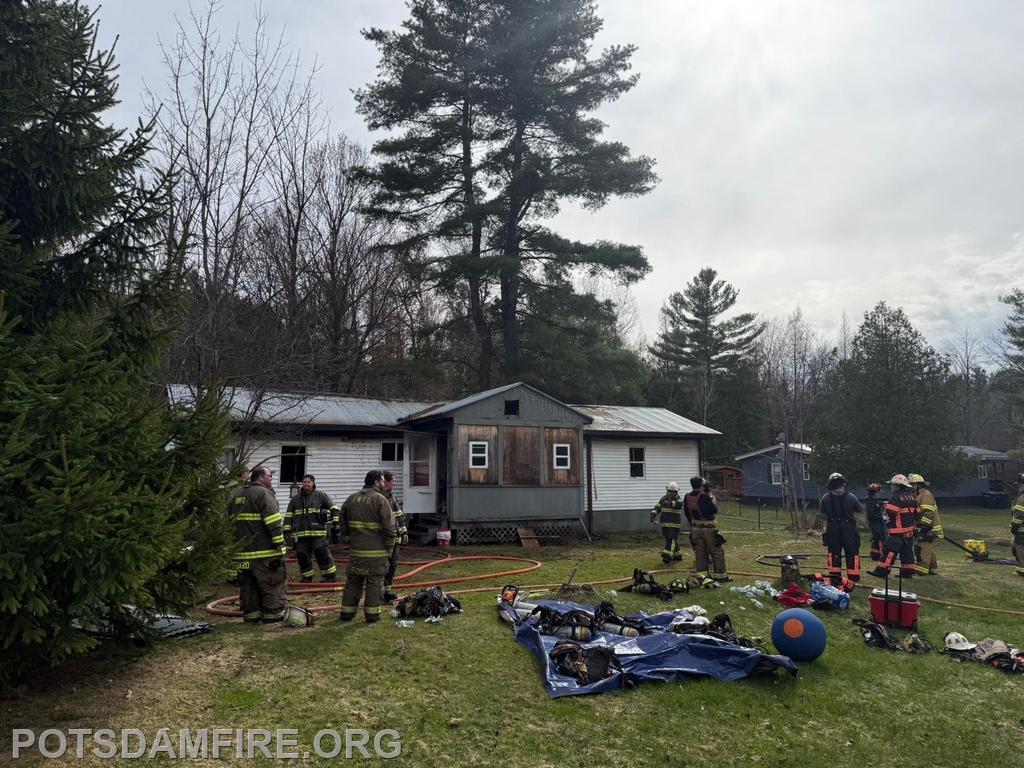 | On April 25, 2026 at 2:36pm, West Stockholm Fire, Tri-Town Rescue, and County Car 10 were dispatched to a reported trailer fire on CR47. Incident Command arrived on scene and requested Brasher Winthrop Fire, Potsdam Fire, Norwood Fire, Norfolk Fire. Potsdam responded with R-14 and manpower. Multiple lines were stretched to the residence on arrival and an aggressive interior attack was initiated. Ladders were placed for crews to perform ventilation and large amounts of overhaul work was done on the interior after the fire was initially knocked down.